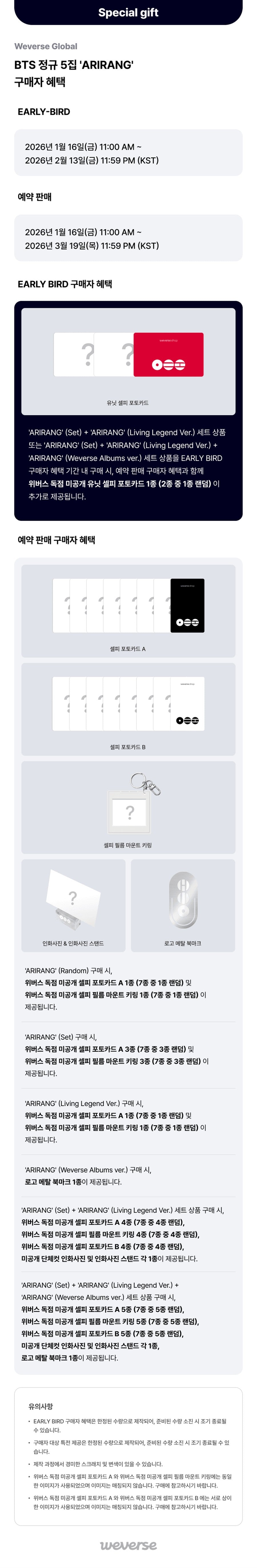 [Early Bird POB][WEVERSE POB] BTS – The 5th Album [ARIRANG] (Set) + (Living Legend Ver.) + (Weverse Albums ver.) Set